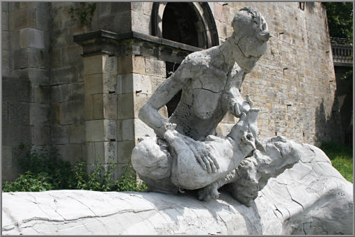 Die das Ferkel säugende Frau im Detail.
