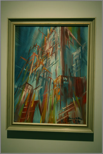 Konrad Zuse gilt als der Erfinder des Computers. Er war aber nicht nur Konstrukteur und Entwickler von Programmiersprachen, sondern betätigte sich auch künstlerisch. Einige seiner Zeichnungen, Holzschnitte und Gemälde sind hier ausgestellt. Bei diesem Bild sind deutliche Parallelen zum Stil eines Lyonel Feininger erkennbar.