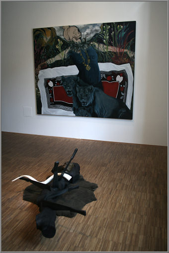 Material:  Installation mit Olivenholz, Bronze, Farbe und anderen Materialien
