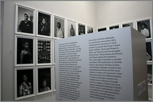 Die Künstlerin schreibt zu ihrem Werk: "Faces und Phases handelt von unseren Geschichten und unseren Kämpfen... In Faces und Phases präsentiere ich unsere Existenz und unseren Widerstand durch positive Bilder schwarzer Trans- und Quermenschen (insbesondere Lesben) in der südafrikanischen Gesellschaft und darüber hinaus.