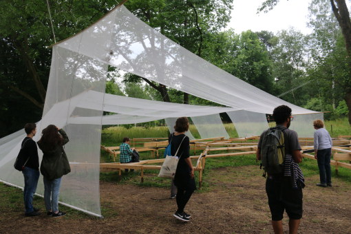 Die Ciudad Abierta (Offene Stadt) ist Kommune, pädagogisches Experiment und praxisnahes Architekturlabor in einem. Sie wurde von einer Gruppe umherziehender Künstler_innen und Dichter_innen auf einem verlassenen, windumtosten Landstrich aus Gras und Sand am Rande des Pazifischen Ozeans gegründet, etwa dreißig Kilometer nördlich der chilenischen Hafenstadt Valparaiso...Das wachsende Interesse der letzten Jahre am einfachen, ländlich-idyllischen Utopismus der Offenen Stadt galt vor allem den historischen Leistungen des Kollektivs – dem Vermächtnis der Ciudad Abierta... Das Kollektiv als lebender Organismus und Experimentierplattform für zukünftige Generationen von Architekt_innen, Dichter_innen und Stadtplaner_innen wiederum präsentiert sich in Kassel und demonstriert eindrucksvoll die wiederkehrende Relevanz seiner improvisierten, umweltverträglichen Form des Bauens.