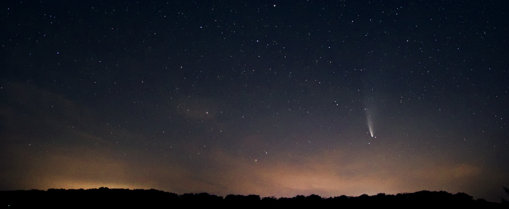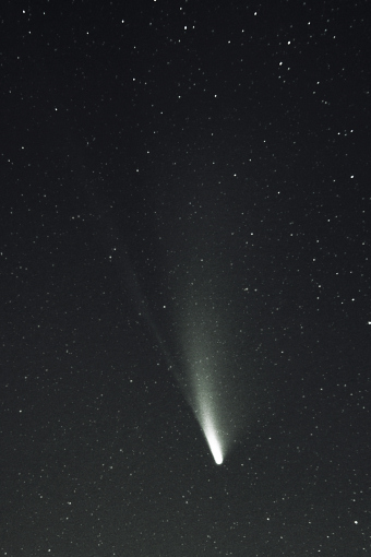 Die Entdeckungsgeschichte dieses Kometen ist etwas ungewöhnlich: Zuerst gesichtet wurde er erst ein Vierteljahr zuvor, genauer am 27.03.2020. Und zwar nicht von einem Astronomen, sondern von einem Satelliten. Und der arbeitet nicht im sichtbaren Licht, sondern im Infrarotbereich. Der Satellit heißt NEOWISE (Near-Earth Objects Wide-field Infrared Survey Explorer), und traditionsgemäß erhielt der Komet auch den Namen seines »Entdeckers«: C/2020 F3 NEOWISE.