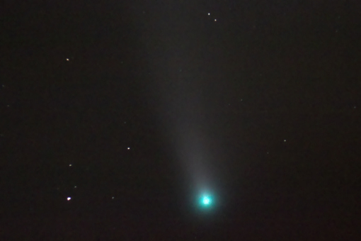 Alle Welt veröffentlichte Fotos vom Kometen - nur hier war der Nordhorizont Tag für Tag wolkenverhangen. Dann hatte ich endlich Glück und bekam den Kometen am frühen Morgen das erste Mal zu Gesicht und »vor die Linse«. Da hatte er sein Perihel schon vor einer Woche erreicht, entfernte sich also wieder von der Sonne, allerdings Richtung Erde.