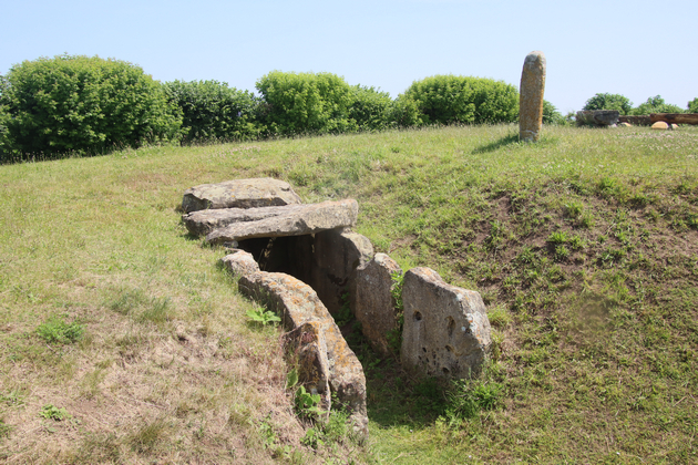 Einige Meter daneben steht eine Replik des Decksteins des Grabes. Es soll eine Gottheit darstellen und wird »die Dolmengöttin« genannt. Das Original befindet sich im Museum für Landesgeschichte in Halle.