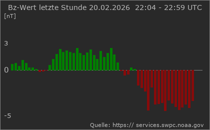 Die Grafik zeigt den Verlauf von Bz innerhalb der letzten Stunde in 1-Minuten-Schritten.