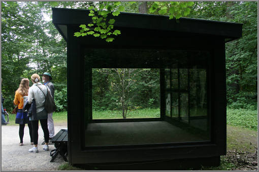 Die Intention der Künstlerin war es, die Grenzen zwischen Innen und Außen fließend zu gestalten, die Trennung zwischen Natur und Wohnwelt aufzuheben.