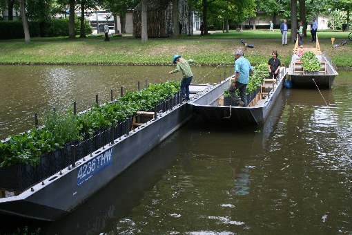 Am Küchengraben, einem künstlich angelegten Kanal des Aueparks, liegt dieses "begehbare" Kunstwerk, auf dem das Wasser überquert werden kann. Der Künstler hat einige Kähne des THW, die an die Zeit des Kalten Krieges erinnern sollen, in schwimmende Mangoldgärten verwandelt. "Durch die sechzig verschiedenen Arten von Mangold, die auf ihnen kultiviert werden, wurde den Kähnen vermittels der historischen, ökologischen und auch kulinarischen Geschichte neues Leben verliehen."